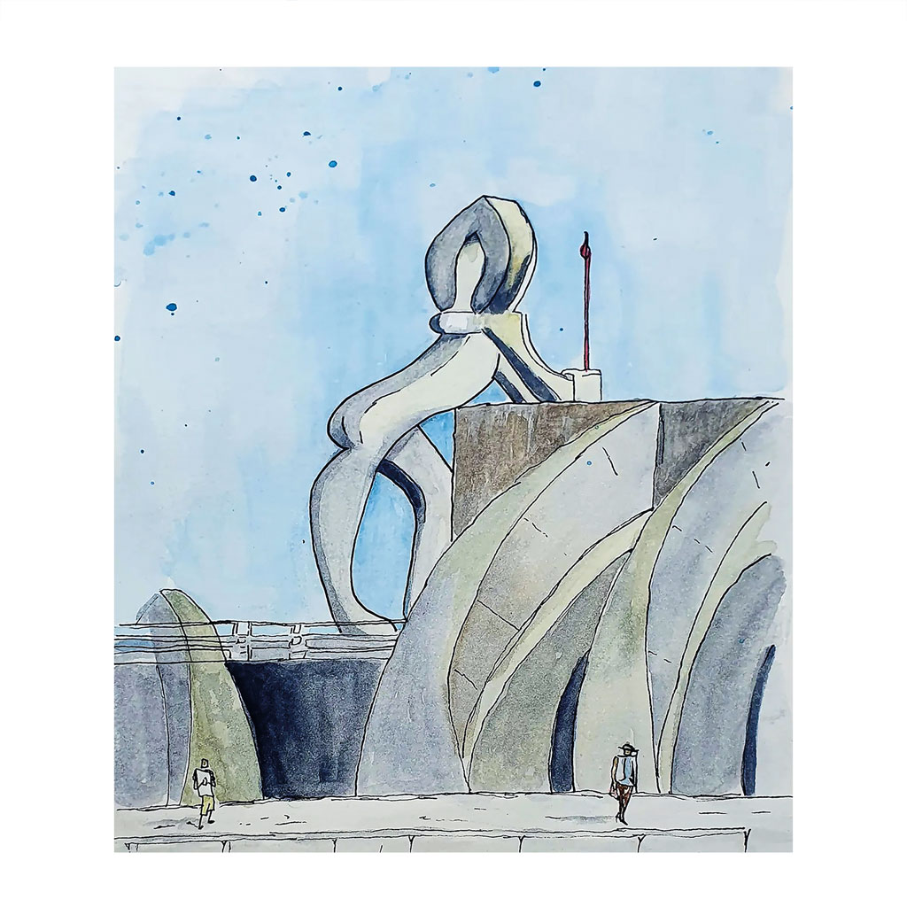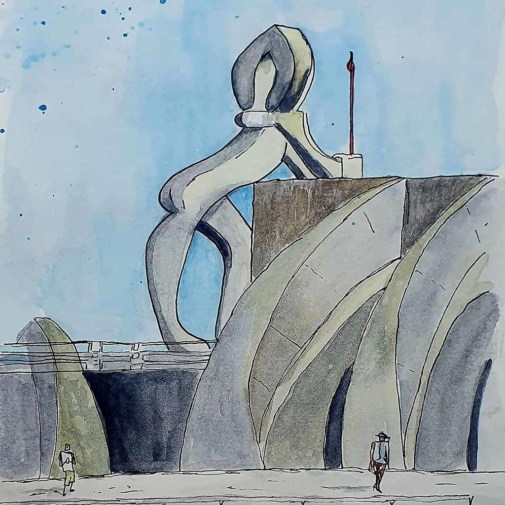 Geschilderd op het mooie eiland La Palma. Een vuurtoren-beeld in de haven van Puerto Tazacorte.