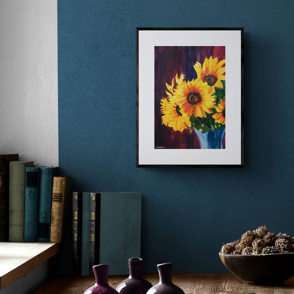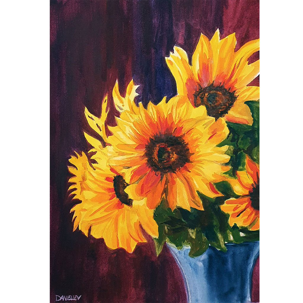 Deze zonnebloemen straalden zoveel energie uit. Zo geel en zo zonnig! Ik wilde ze heel graag schilderen. Om een beetje zon te vangen en te bewaren voor een minder warme dag.